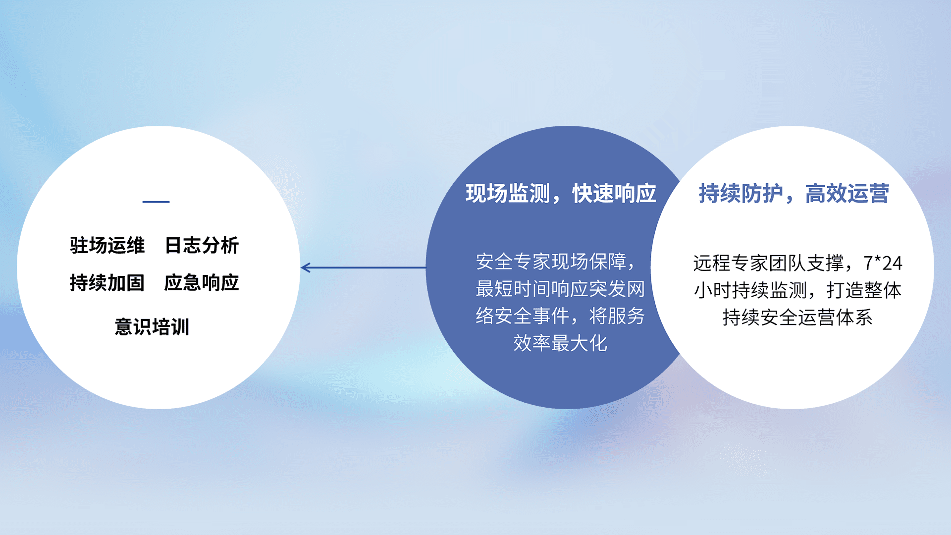 针对客户行业特性,,,提供专属的一站式安全管理服务,,帮助客户全面感知网络空间威胁,,通过安全专家的线上、、线下防护支持,,,,实现风险闭环,,,,将安全保障常态化,,,,为客户打造常态化安全运维运营服务。。